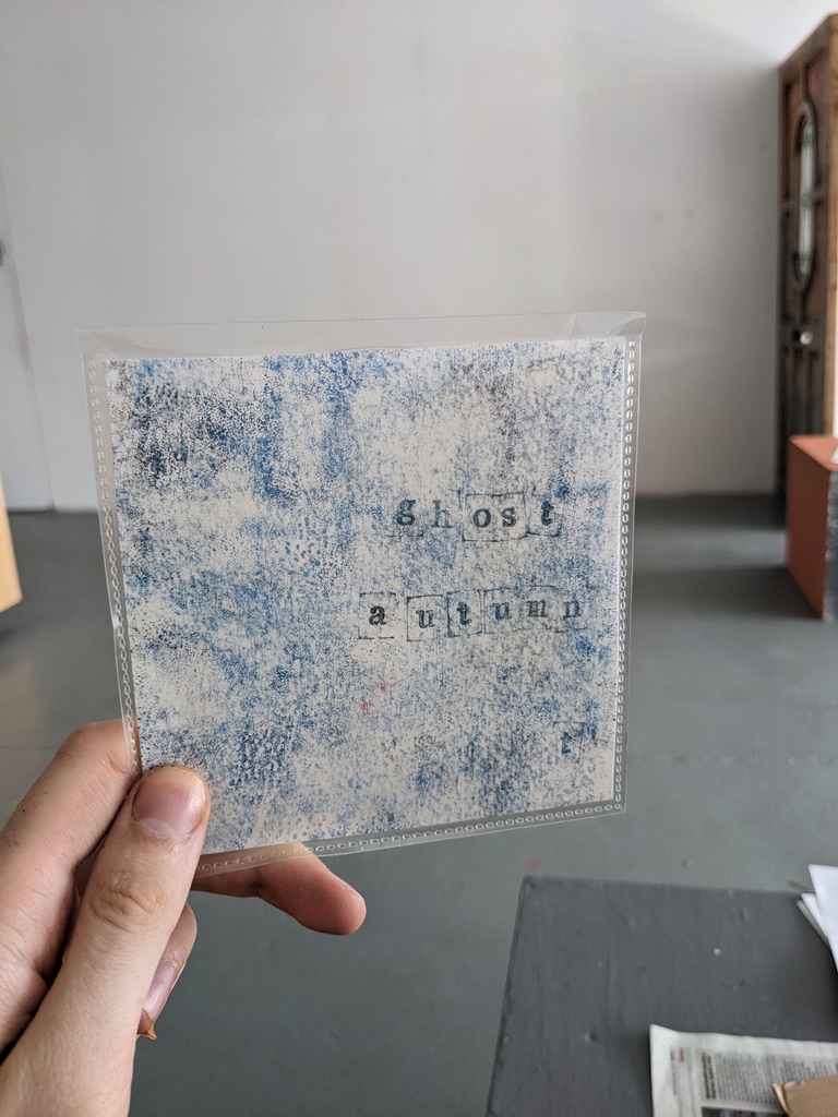The artwork for the cds is also unique to each cd – made with Ruby Lewis (of Bostin Arts, Spectra) at a mono printing workshop I helped at once – so this determined how many cds I burnt. (At time of writing I think there are 11 out of 18 left!)