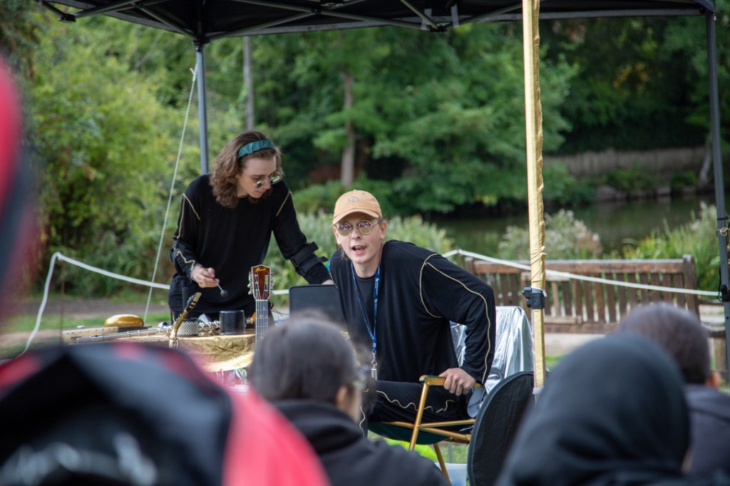 To compose and perform, they use trumpets, voices, ukuleles and keyboards, and love finding new ways to make music. Isaac regularly brings their interests and skills from outside of music into their work, including poetry, tap dance, physical theatre and sign language.
